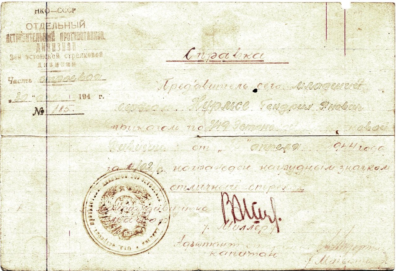 Nõus, minu viga. Kuna see dokument ise on väga pleekinud, siis on ilmselt keegi selle aastaarvu üle teinud ja muidugi sai ta selle märgi hiljem. Dokumendi enda originaalsuses ma muus osas ei kahtle, sellises üksuses Nurmse tõesti oli.Plönn kirjutas: ↑E Okt 10, 2022 8:17 pmMidagi pole siin päris õige...