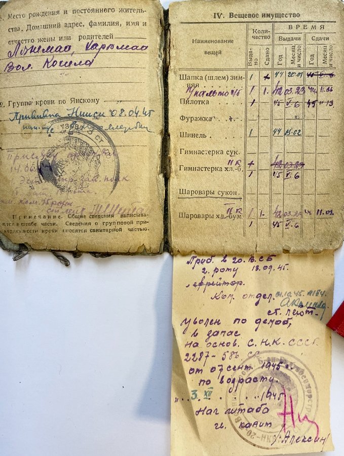Mul kaa, 1 selline Artilleristi oma , aga u 1/4 vihikulehest ja aastast `44.