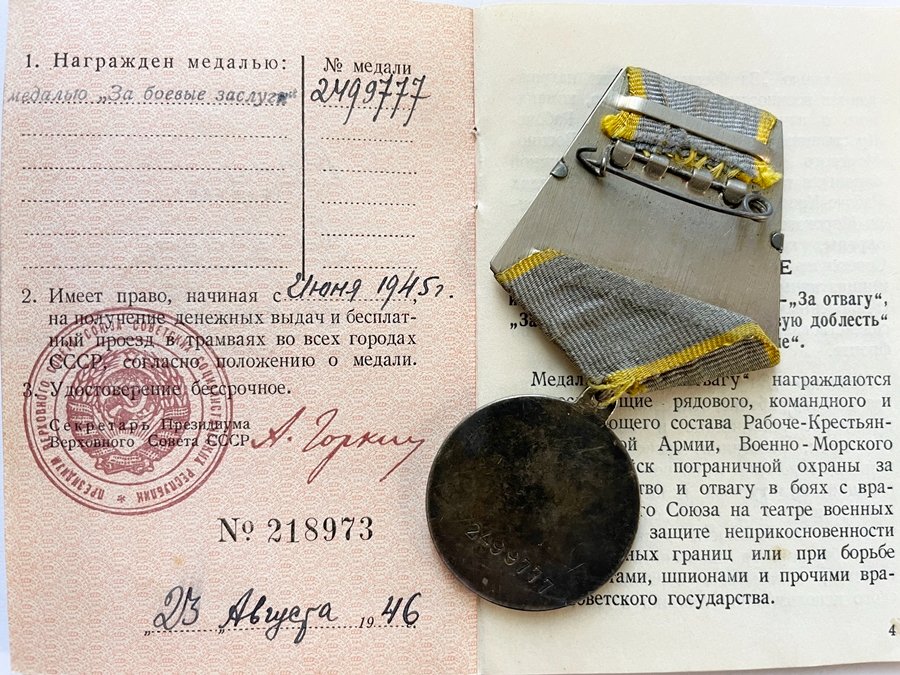 Oksjonilt läbi käinud Lahinguteenete medal 2499658 ja Vapruse medal 2353356, mõlemaga ilmselt autasustatud Kuramaa lahingute eest.