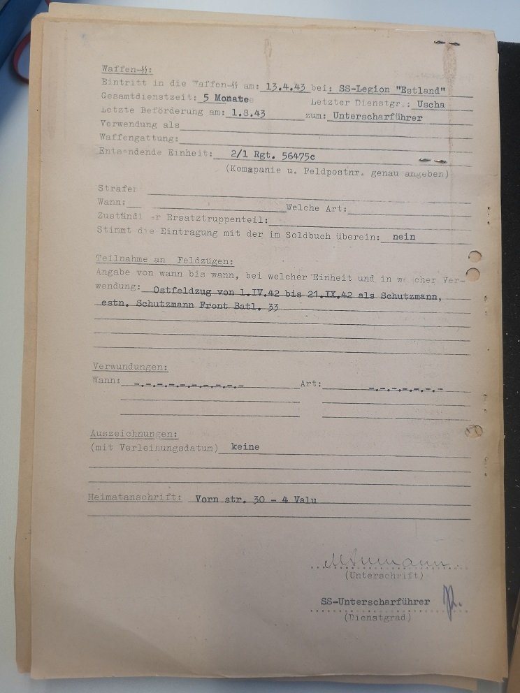 Here is a new officers candidate from Estonia. He was in Tölz 43-44 and to my knowledge he became SS-Oberjunker.