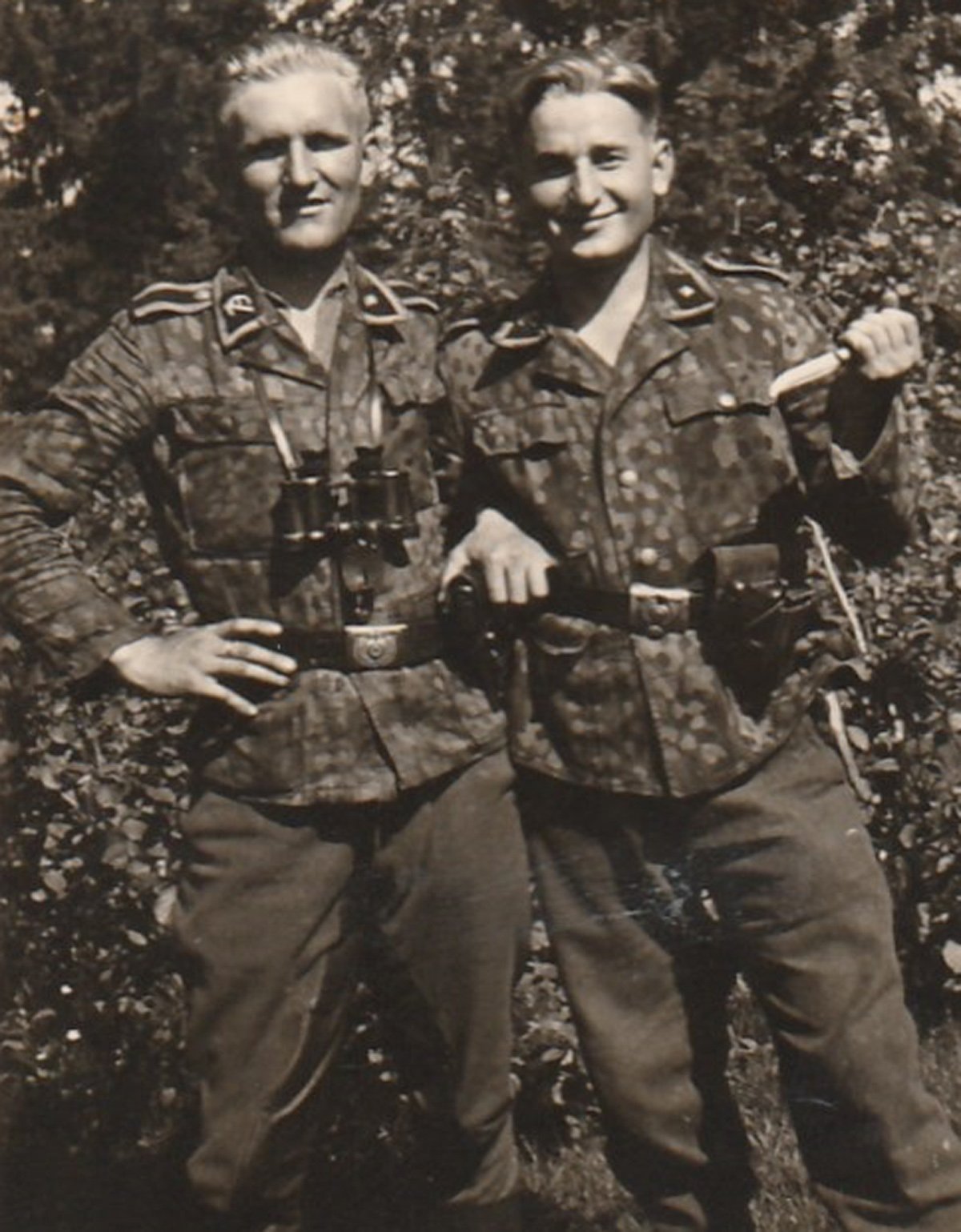 Kaks lõbusat Sturmmann'i, kellest üks on oma täpijaki moekalt püksi toppinud.