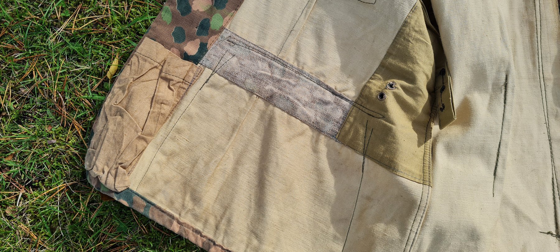 Umbes 30 aasta eest leiti see kuub, mis on lisatud fotol oleval mehel seljas. Kloogal väljaõppelaagris välja antud kuue jättis koju puhkusele tulnud sõdur oma Omakaitsesse kuulunud isale, kes sellega siis vähemalt selle ühe ülesvõtte jaoks on poseerinud. Kuub oli valmistatud kollasele HBT kangale trükitud riidest ja SS-BW markeeringutega nagu siin teemas varem näidatud kaks eksemplari. Huvitav oli olnud see, et nööbid ei olnud kuue külge õmmeldud vaid olid kinnitatud S-rõngastega nagu need on WH kalasabamuster kangast kuubedel. Õlakute aasad olid peal (ka fotolt näha) aga õlakute nööpe ei olnud, kotkast ei olnud.