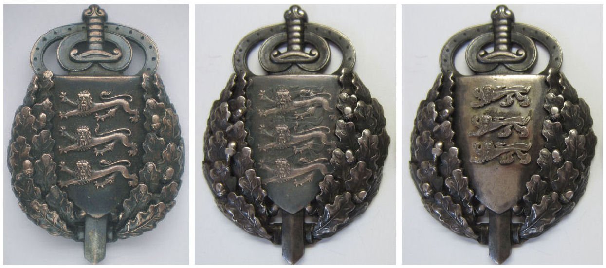 Vasakul on on tavaline ja paremal see mündist võetud lõvidega märk. Keskel on pilt, kus mündist võetud lõvidega märgile on Photoshopis peale sätitud tüüpilise Tavasti KS märgi keskplaat ja juhiti tähelepanu, et sellele kilbile ei mahuks need lõvid lihtsalt ära - märk ja selle kilbiosa on kitsamad kui tüüpilisel variandil. Mulle endale jäi neid pilte vaadates silma, et mündist võetud lõvidega märgil asetsevad lõvid kõrgemal kui tavaliselt - tagumiselt küljelt on näha, et kinnitusaugud on algupärased ja midagi seal ringi tehtud ei ole ja isegi kui lõvid ongi vahetatud siis on need algusest peale kõrgemal asetsenud kui tavaliselt Tavasti märkidel.