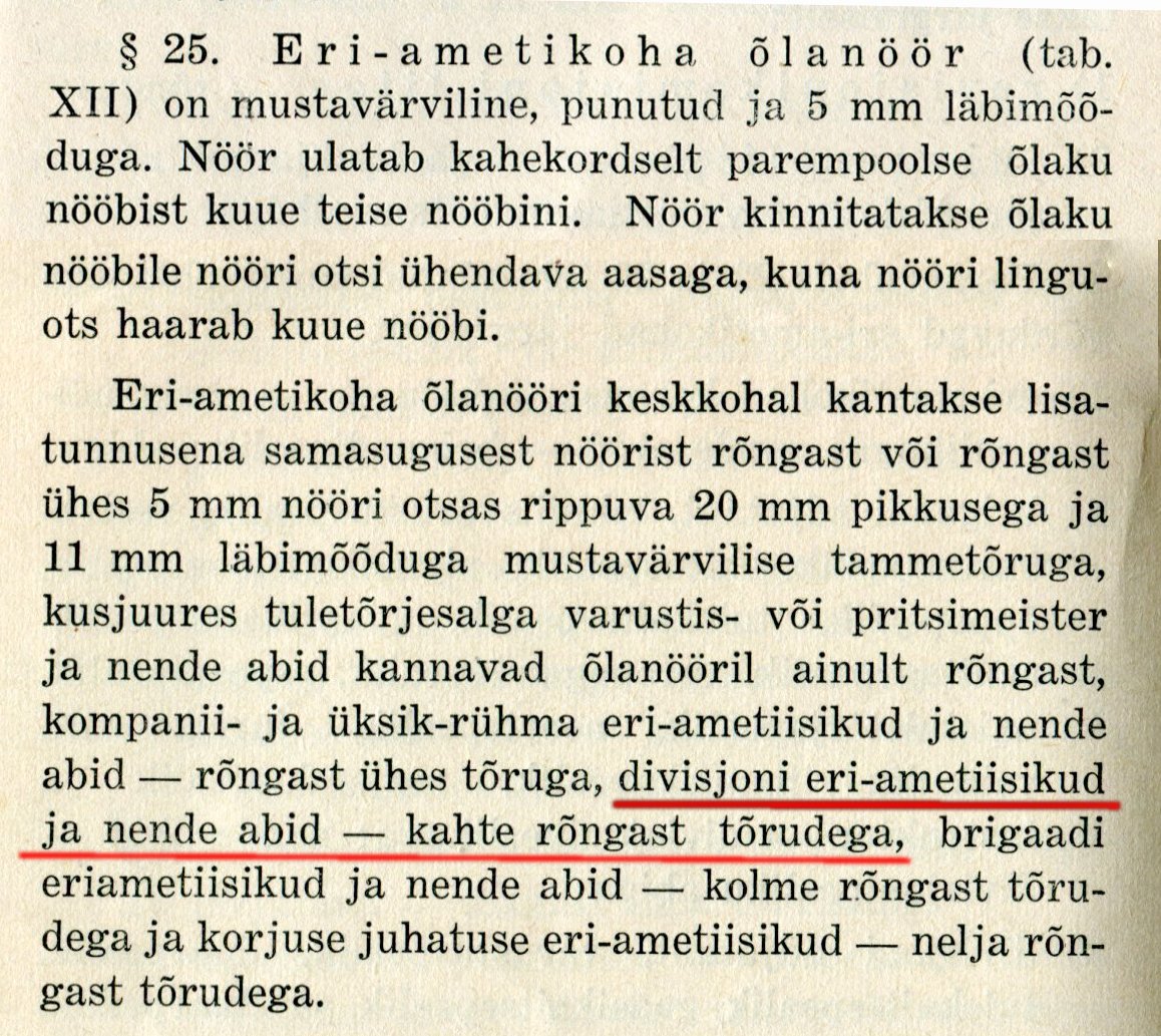 Eri-ametikoha õlanöörid - tuletõrjesalga varustis- või pritsimeister ja nende abid kannavad ülanööril ainult rõngast.