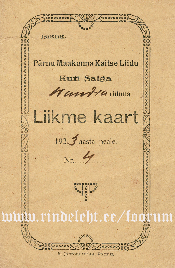 Pärnumaa maleva Halliste malevkonna käiselintide valmistamine, 27.05.1930. a.