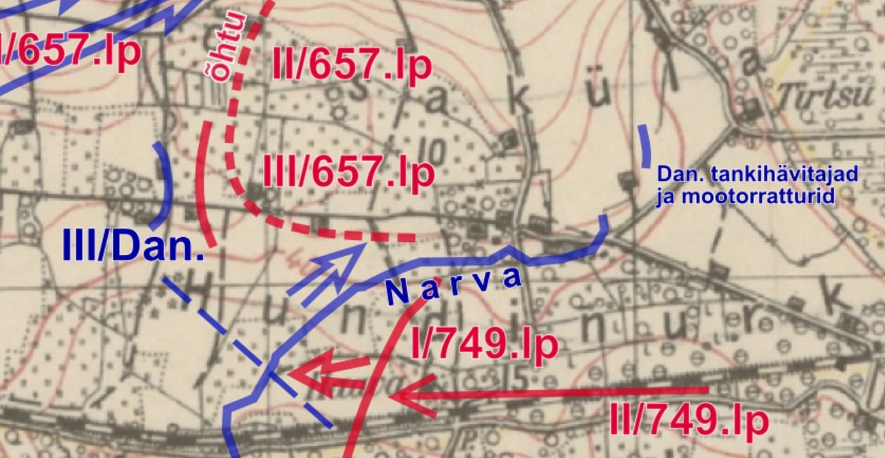 Arvestades, et III/Danmarki vahejoon II/Danmarkiga oli põhja pool raudteed, siis pole kuigi usutav, et Narva allüksus asus ka lõunapool raudteed (Narva kompaniid allusid tõen. terve lahingu aja III/Danmarkile). Ja kuna sõjakirjasaatja artiklis 29.07 tankirünnakut ei mainita, siis tõenäoliselt toimus see III/Danmarki lõunatiival asunud allüksuse lõigus, mis ei olnud osa Narva pataljonist. Arvestades Narva pataljoni arvulist nõrkust, siis vaevalt, et tema lõik palju üle poole kilomeetri pikk oli.