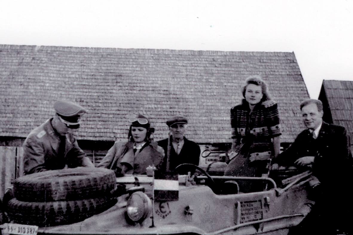 Eestlaste Schwimmwagen, numbrimärgiga SS-307787,Mlada Boleslav, Tšehhi, 10.05.1945. Parema kvaliteediga foto Jacek Cieleck'i raamatus "Porisse tallatud lootus. 20. SS-Div. okt.1944-mai 1945." lehekülg 236.