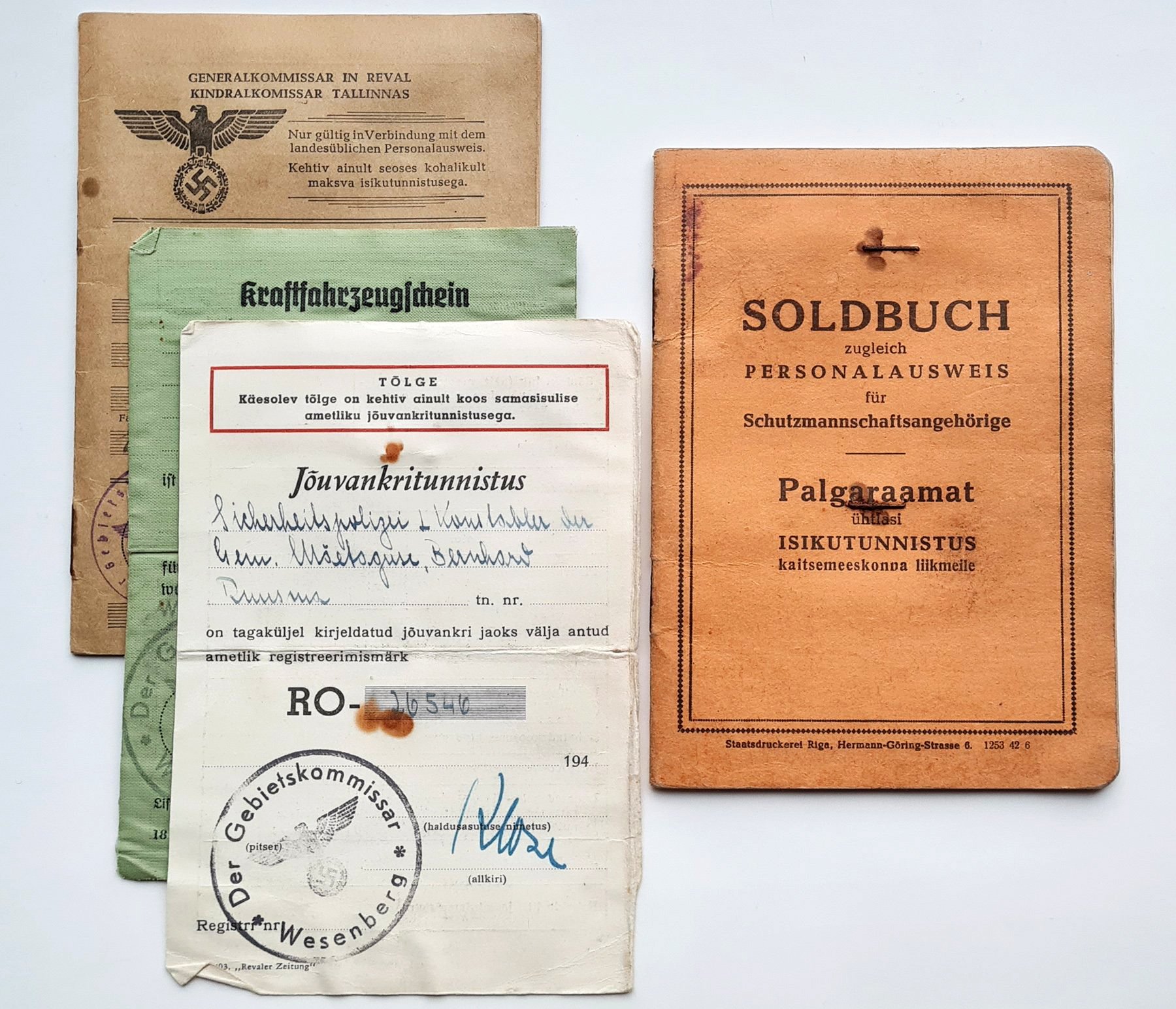 Ennesõjaaegsed Eesti kaitseväeteenistuse tunnistused, mis kirjutati meestele välja reservi arvamisel. Kõikidest värvidest on puudu veel ainult roosade kaantega tunnistus, milliseid anti ratsaväes teeninud jalgratturitele, ratsaväe pioneeridele, kuulipilduritele ja telefonistidele ning ratsaväes teeninud ratsaväelastele (jalaväe üksuste ratsaväelased said siniste kaantega tunnistused).