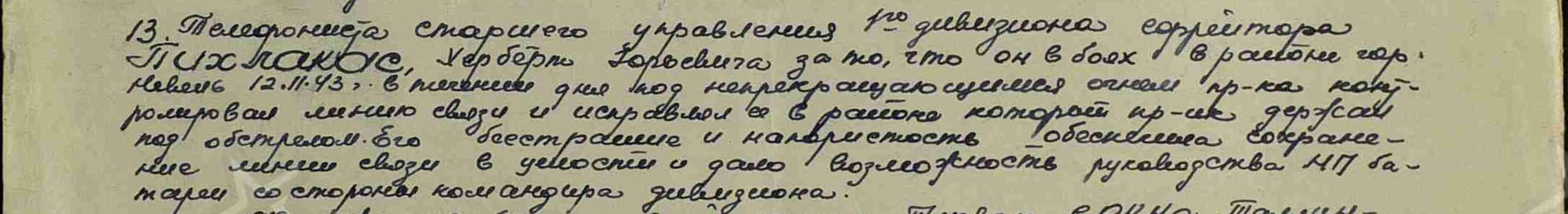 7. laskurdiviisi 23. suurtükipolgu telefonist, jefreitor Herbert Pihlakas sai mõlemad oma autasud - Vapruse medali (595351) ja Kuulsuse ordeni III järgu (45006) lahingute eest Neveli - Novosokolniki piirkonnas. Suurtükiväeüksused jõudsid sinna 1943. aasta 6. novembriks ja järgmise päeva koidikuks oldi tulepositsioonidel mõned kilomeetrid Nevelist ida pool. Mitu korda vahetati positsioone ja 20. jaanuari paiku viidi 8. ELK'i suurtükiväeosad sellest lõigust minema. Pihlakas sai mõlemad oma autasud katkenud sideliinide parandamise eest, Vapruse medali annetamine kinnitatud 30.11.1943 ja Kuulsuse orden 03.02.1944. Kokku annetati Eesti Korpuse suurtükiväelastele nendes lahingutes 53 ordenit ja 98 medalit - Pihlakas sai mõlemad.