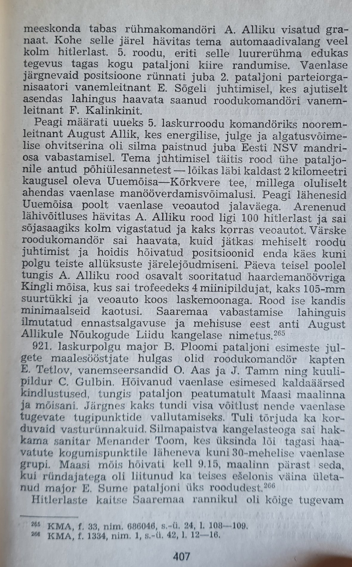 Ning paar kirjeldust 5. oktoobri lahingu kohta raamatutest, kus ka tema nimi ära saab mainitud ja tema Isamaasõja ordeni 1. järgu autasuleht.