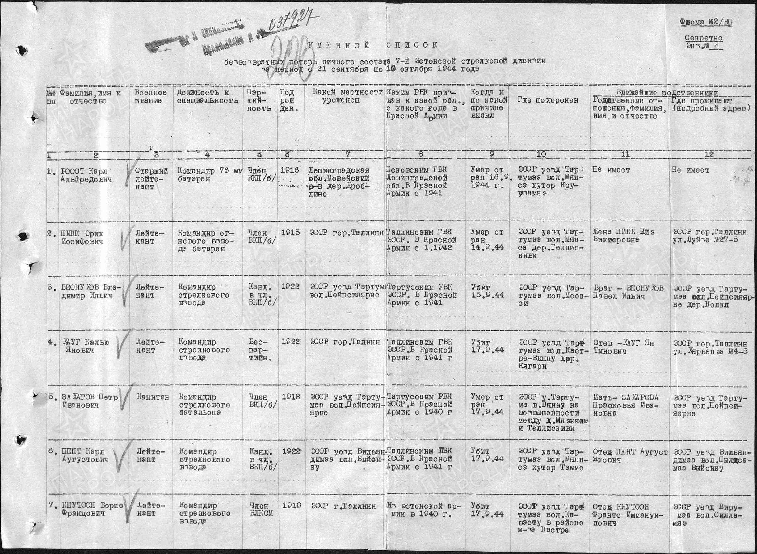 Korpusepoiss Karl Roost. 917. Laskurpolk, 249. Laskurdiviis. Punarmees alates 1941. Lahiguteenete,Punatähe ja Isamaasõja ordeni(II) kavaler. Teada vaid punatähe number 113622, saadud Luki lahingus