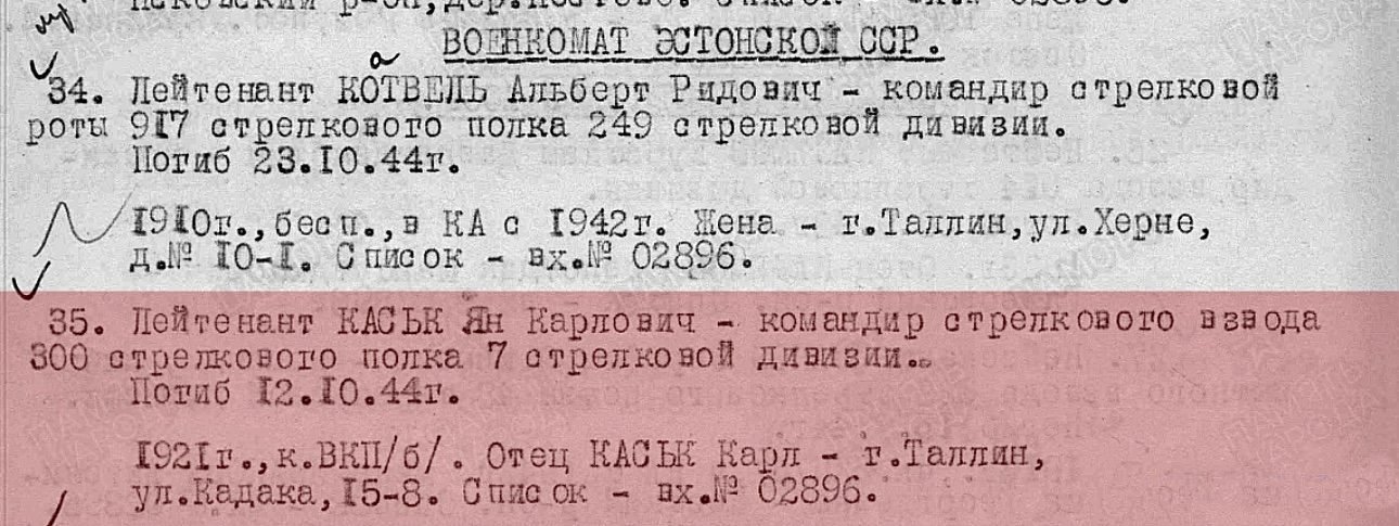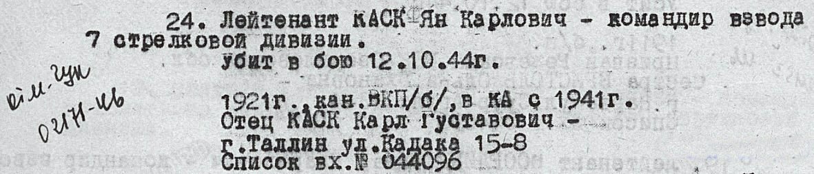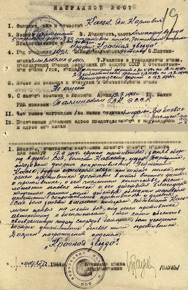 See konkreetne autasu oli ühes välismaises foorumis. Leitnant Jaan Kask 7. Eesti Laskurdiviisi 300. Laskurpolgu 5. laskurroodu rühmakomandör. Punatähe ordeni 2018110 kavaler, autasustati 1944. a sügisel.