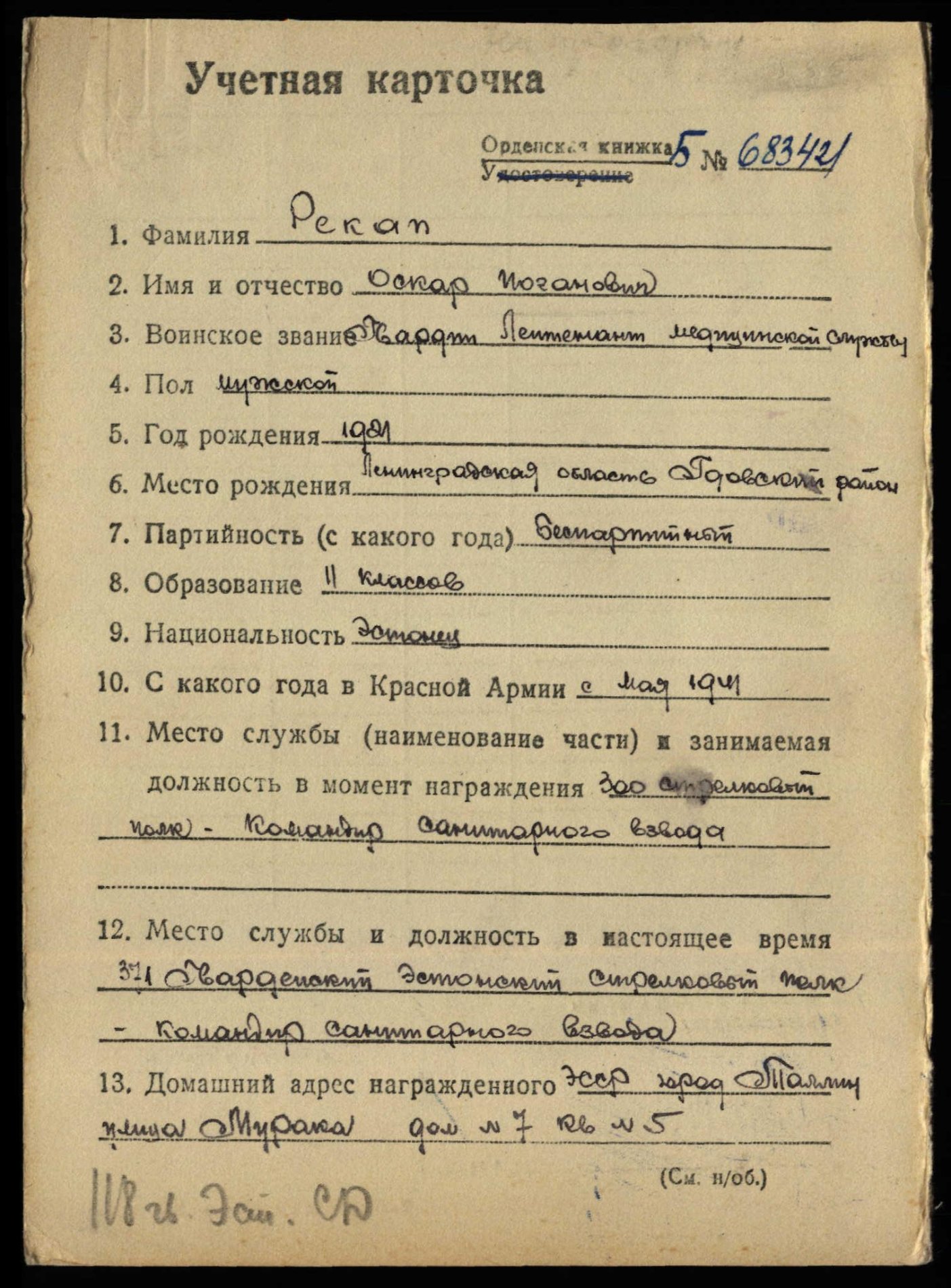 Oletasin ise ka, et sellist tunnistust pigem polnudki - ilmselt fikseeriti kaardiväelaseks saamine // märgi andmine vastava sissekandega punaarmeelase isiklikus raamatukeses...