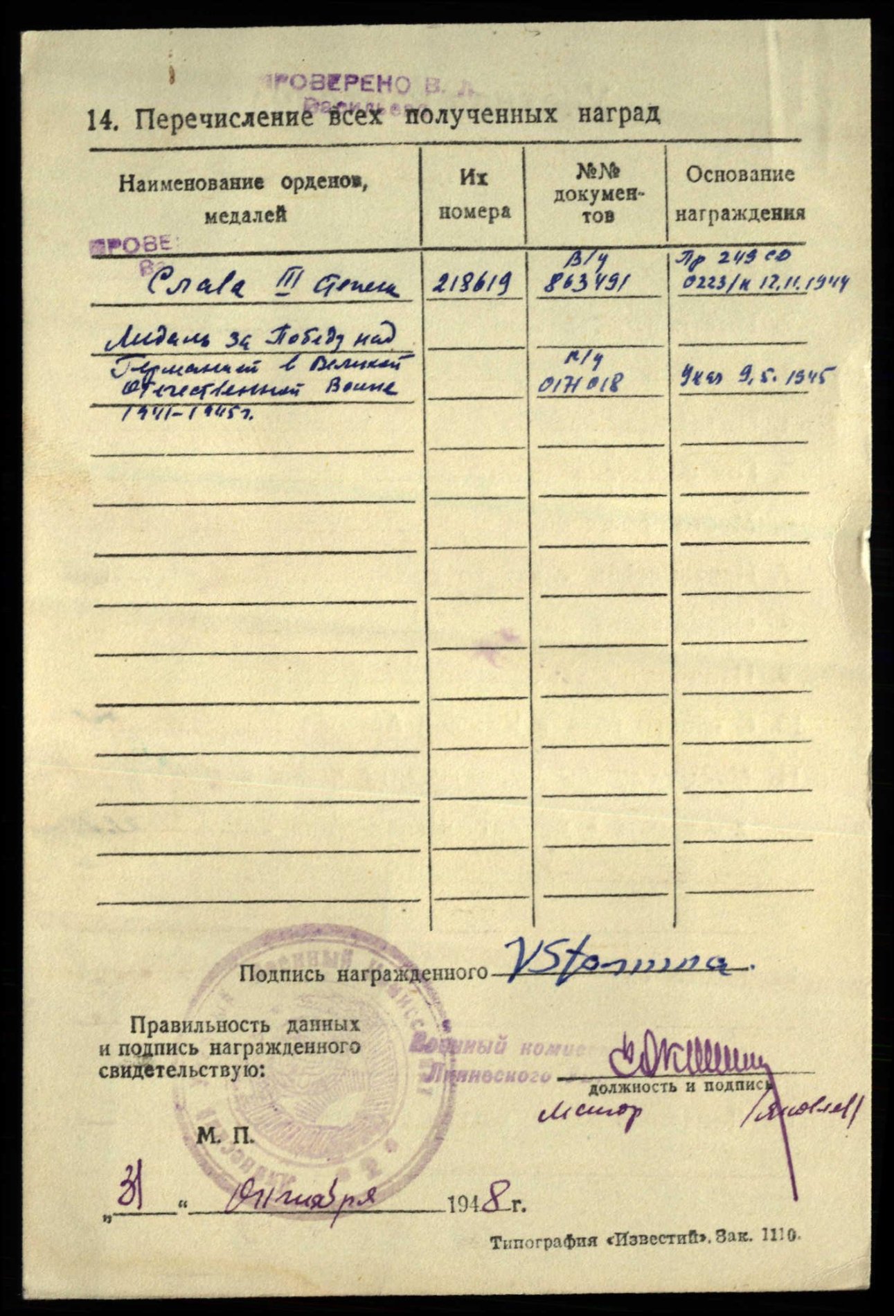 450022, kapten Petr Razivin, 14. Üksiku sidepataljoni partorg. Orden saadud suuremalt jaolt mitte millegi eest.