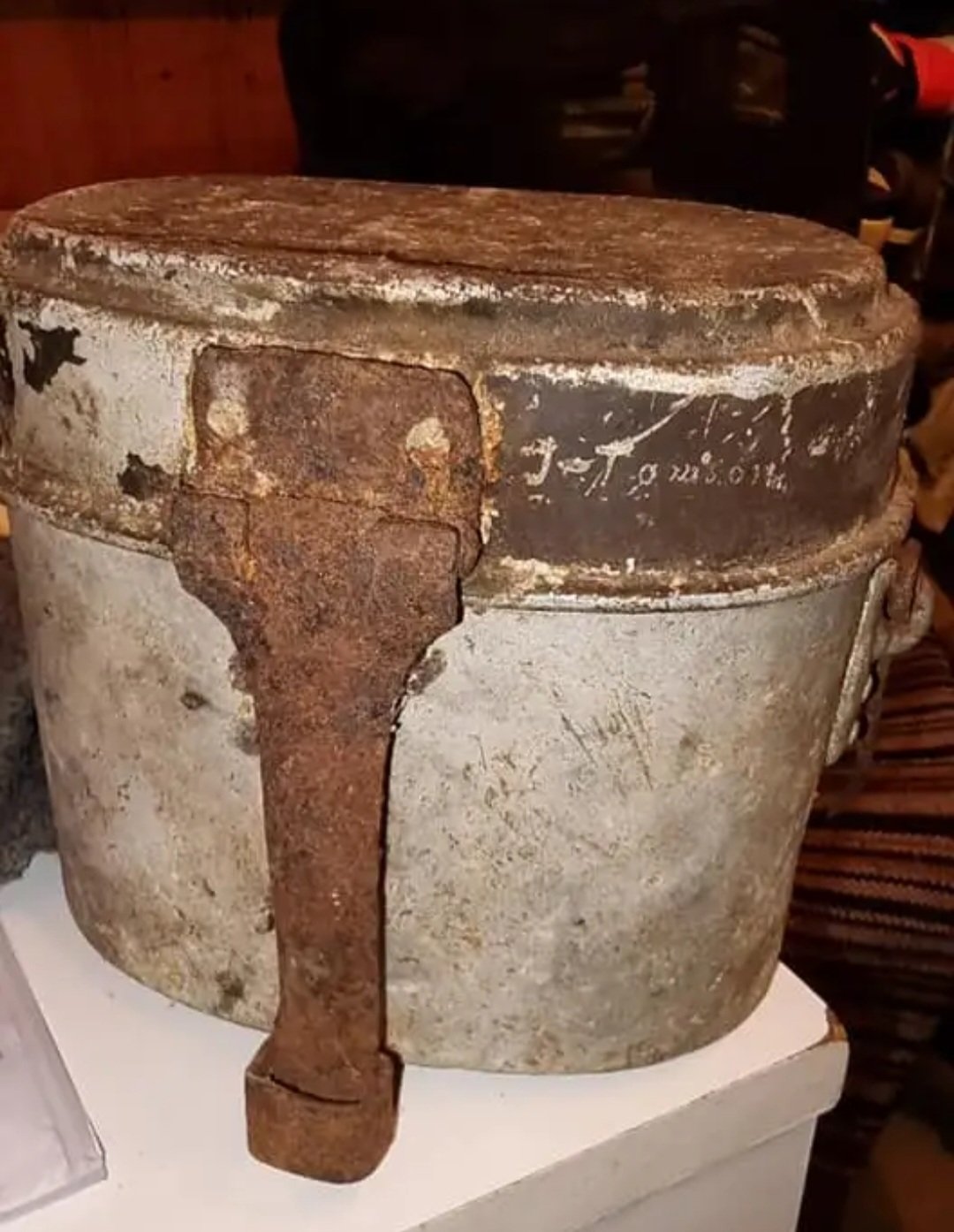 Saksa 8cm miinipilduja miinide kast. Sisse ja välja kirjutatud nimi K.Ruul. Kaste kasutati ka sõduri isiklike asjade hoiustamiseks. Otsing annab: