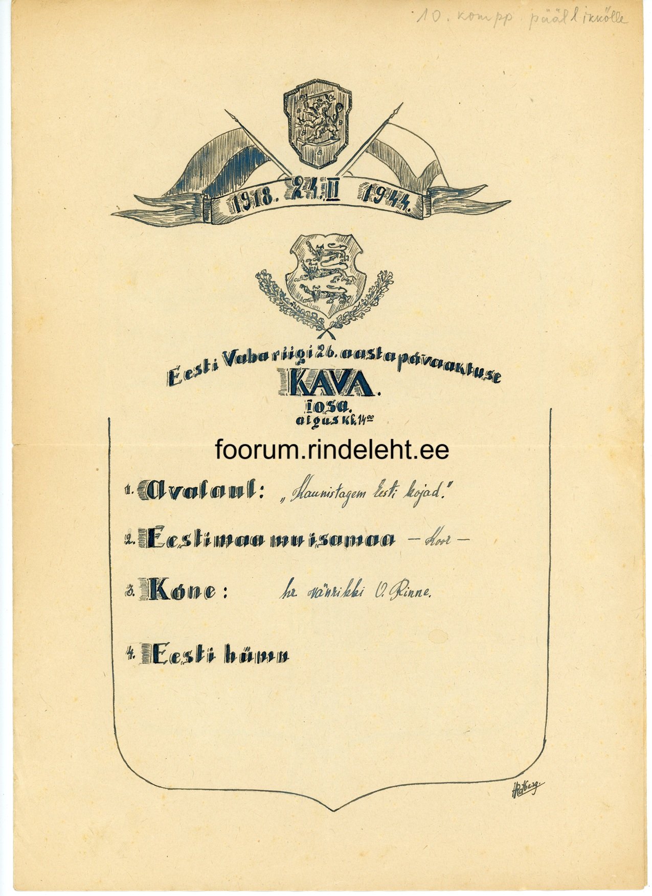 Eesti Vabariigi 26. aastapäeva aktuse kava 1944. a.
