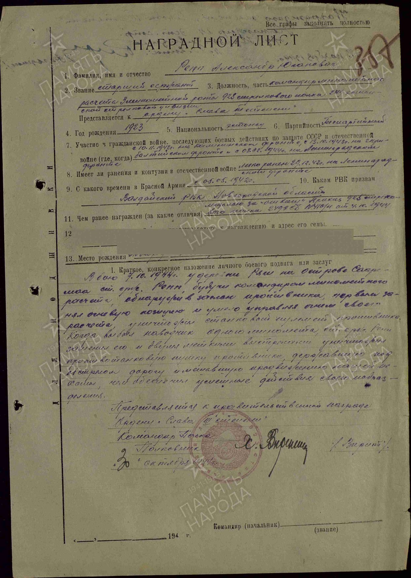 Seda Kuulsuse ordenit (430497) olen varem näidanud aga nüüd on omanik ka teada - 8. ELK'i 249. LD 925. laskurpolgu vanemseersant Aleksander Repp. Oli 925. LP 3. miinipildujaroodus miinipildujameeskonna ülem. Käsikirjalise lehe tõlkimisega jääb ChatGPT taaskord hätta ja saan sealt ainult aru, et orden anti, millegi eest, mis toimus 1944. aasta 7. oktoobril Saaremaal.