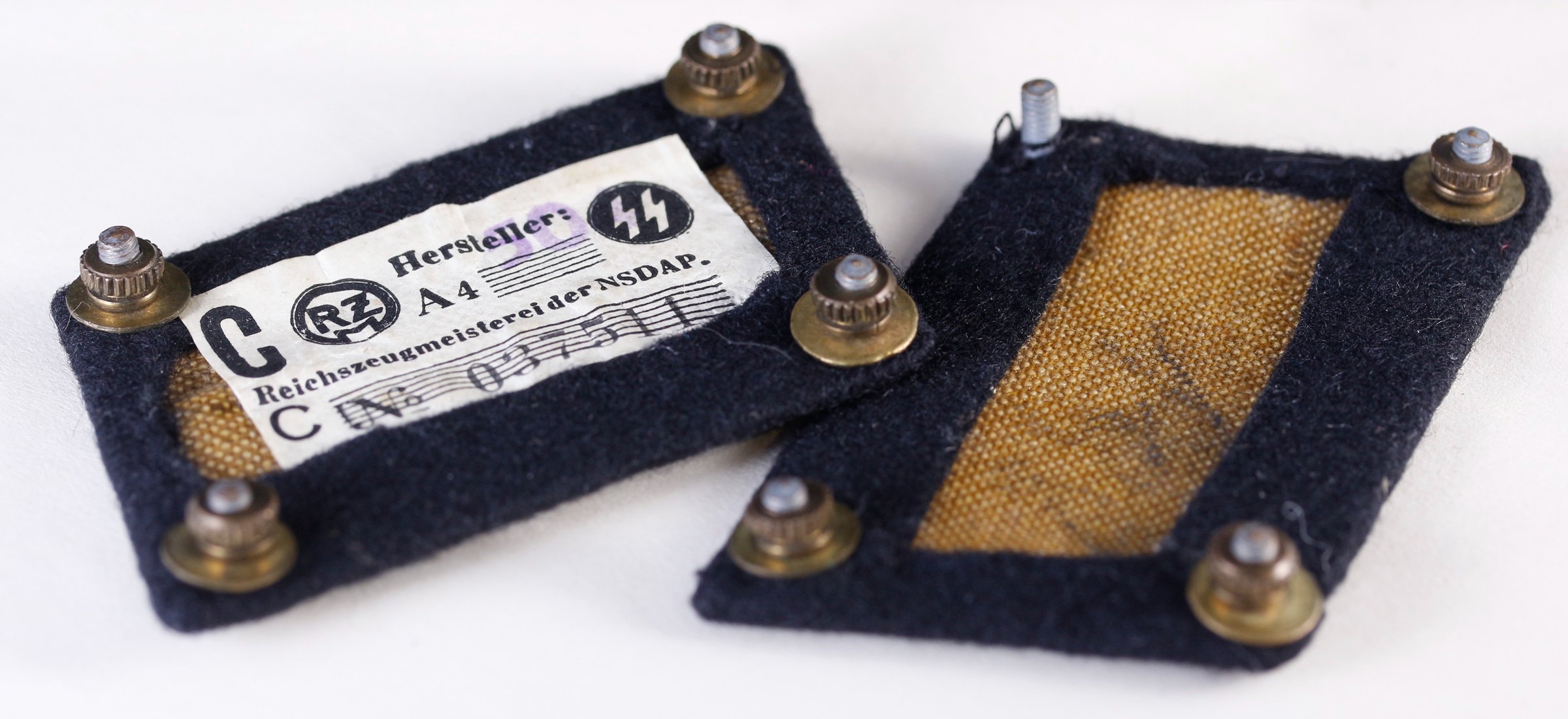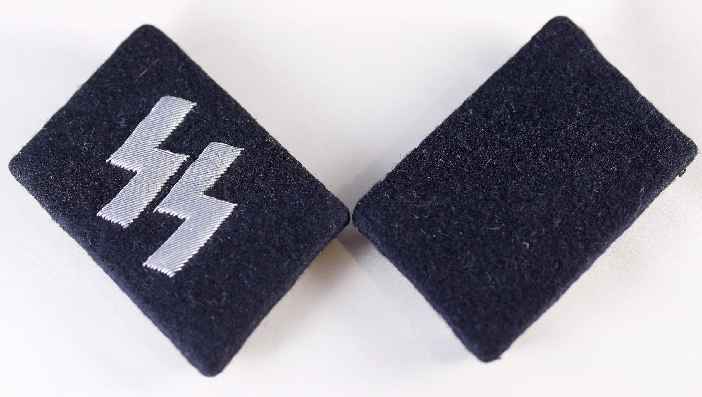Selle teema 11. lehel kirjutasin natuke pikemalt ruunidega kraenurkadest ja sellest, et neid hõbeniidiga embleeme võis iga vähe edevam sõdur endale poest osta. Hiljuti lisandusid mu kollektsiooni Soome vabatahtliku kaprali, Rottenführer Jaakko Rönnemaa eriliselt uhked, hõbeniidiga käsitsi tikitud ja mutterkinnitusega kraenurgad. Sedalaadi mutterkinnitust kohtab pigem kõrgema auastmega ohvitseride kraenurkade puhul - Standartenführer ja sealt üles. Selline ruunikomplekt on väga haruldane.