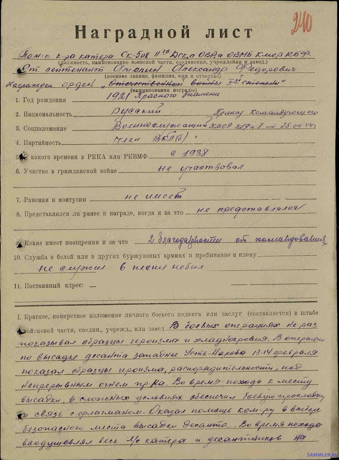 Huvitav Eestiga seotud autasustamine. Meriküla dessandis osalenud kaatri SK-508 (BMO- 508) komandöri abi vanemleitnant Aleksandr Amelini Punalipu orden nr. 99887.