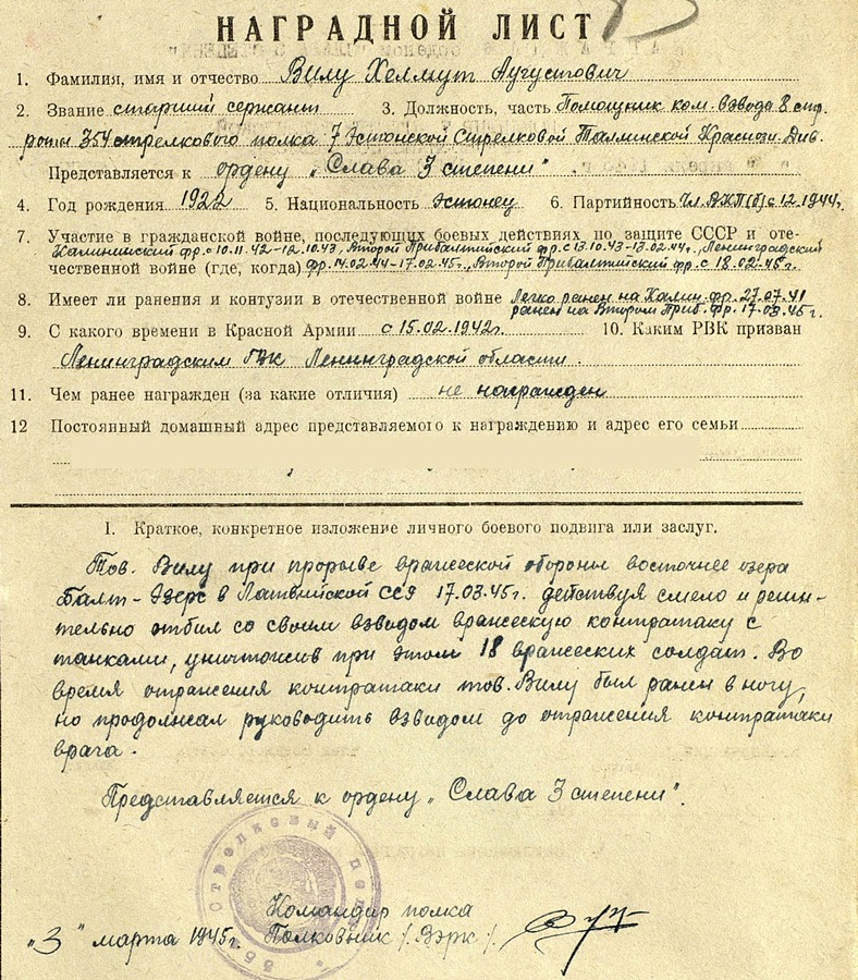 Teen otsa lahti oma suguvõsast pärit mehega. Sai Saaremaal haavata, Vapruse medali (2764640) kavaler.