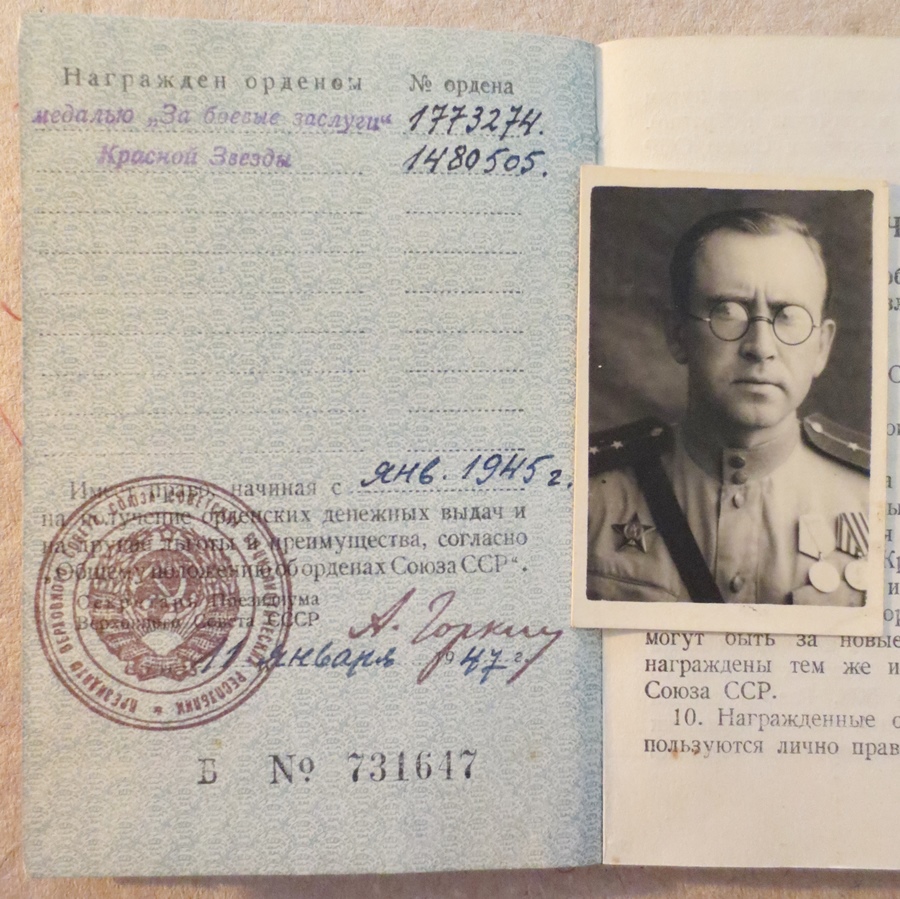 Vanem Johannes Fersheli autasu ja dokumendid. Punaarmeelase raamatus huvitav märge IX. 10. 1940 Eesti armeest üle toodud.