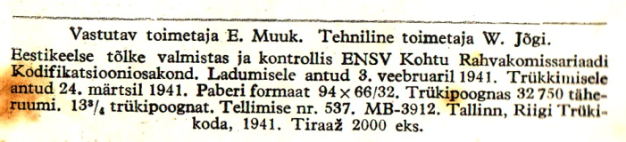 Pildil olev raamatuke näib üsna haruldane olevat, vähemalt mitu kraadi haruldasem oma aasta vanemast (1940) vennast - neid liigub rohkem.