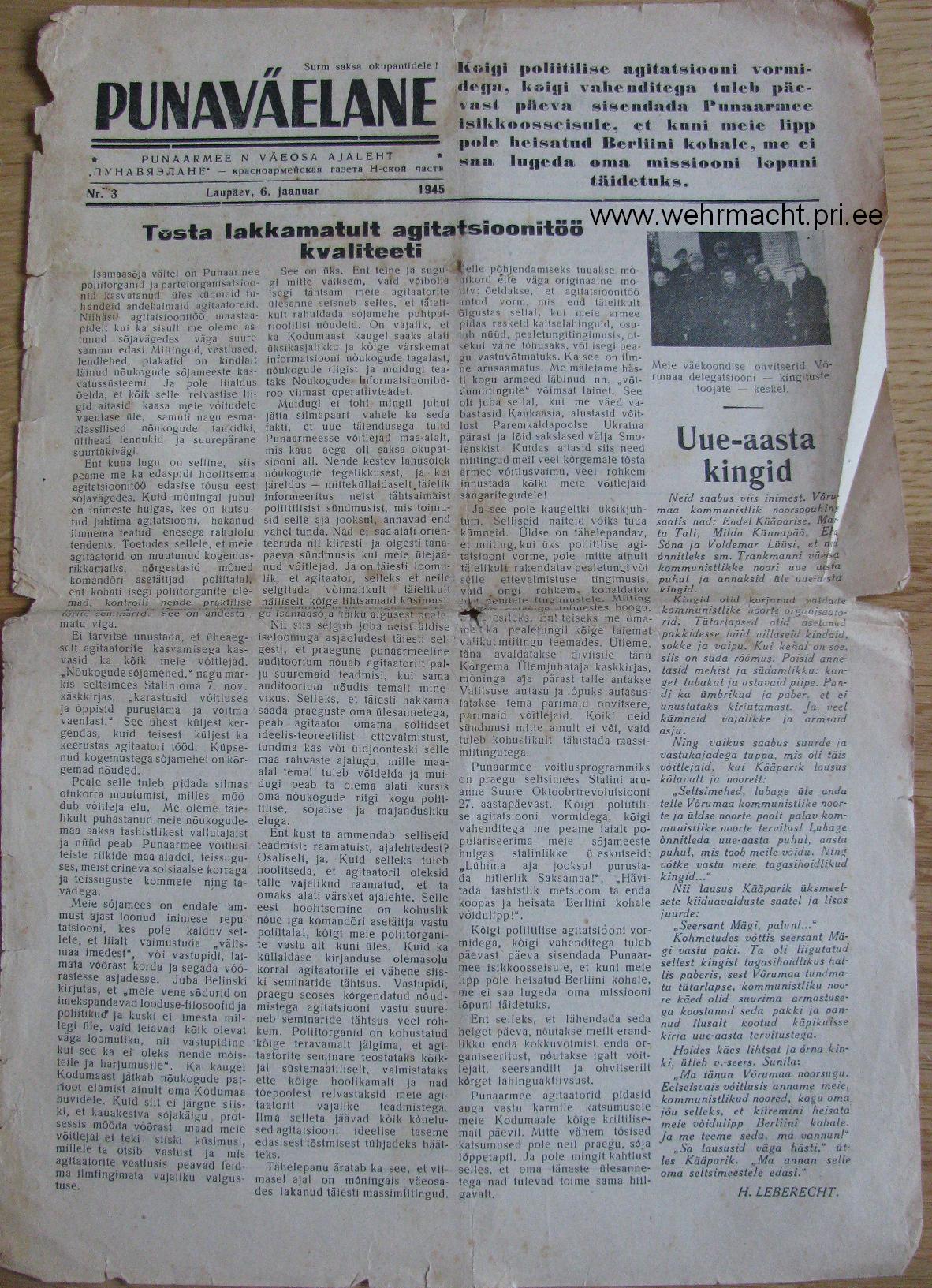 "Punaväelase" eriväljaanne 1.jaan. 1945.a. "Punaväelase" eriväljaanne 6.jaan. 1945.a.