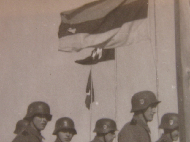 Palun targemate abi seoses ühe vana pildiga. Ehk on keegi sarnast ülesvõtet näinud või teab täpselt öelda, mis meestega tegu. Pilt küll kehva kvaliteediga aga kui seda ümber pildistasin siis avastasin et keskel näikse ss-lipp olevat.