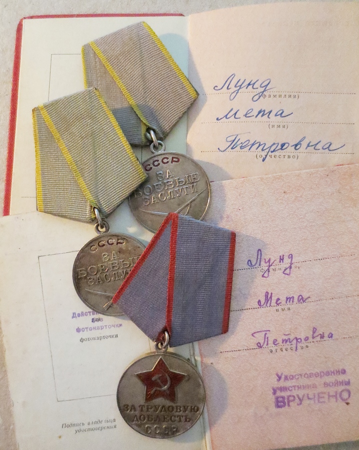 Järgmisena mitmetes korpusemeeste mälestusteraamatutes mainitud meditsiiniõe autasud. Meeta Lund, kahekordne Lahinguteenete medali kavaler. Mõlemad medalid on numbriga.