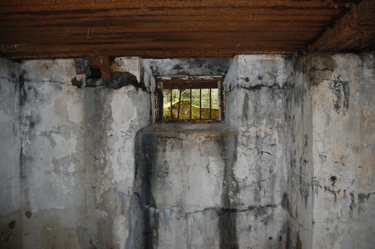 Kadunud on ülaääre reeling ja metalltrepp vasakust nurgast. Seintel on säilinud rohelised kamoflaažilaigud ja kiri: Keldriosas väike koridor ja kaks küllaltki väikest ruumi.