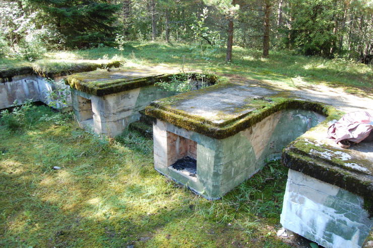 Helgiheitja läheduses on kaks suurtükipositsiooni, neist ühel lösutab sovjeediaegne suvila.