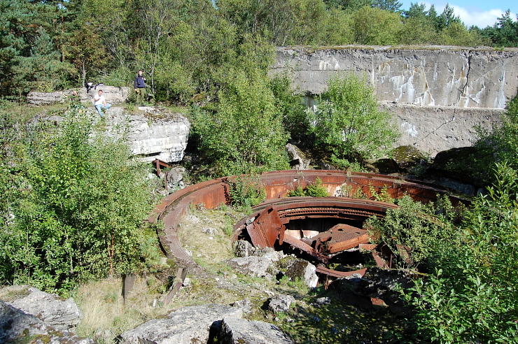 Generaatori alus koos jupi vundamendiga. Ümbruses vedelevad erinevad detailid. Pöörang. Mööda tammi veeretati helgiheitja positsioonile.