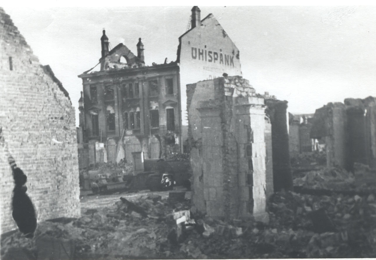 Foto. Võru vabastamine 1944.a. augustis. Purustused Jüri ja Tartu tänavate nurgal..jpg