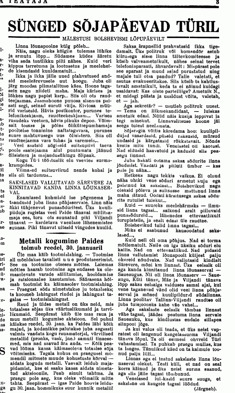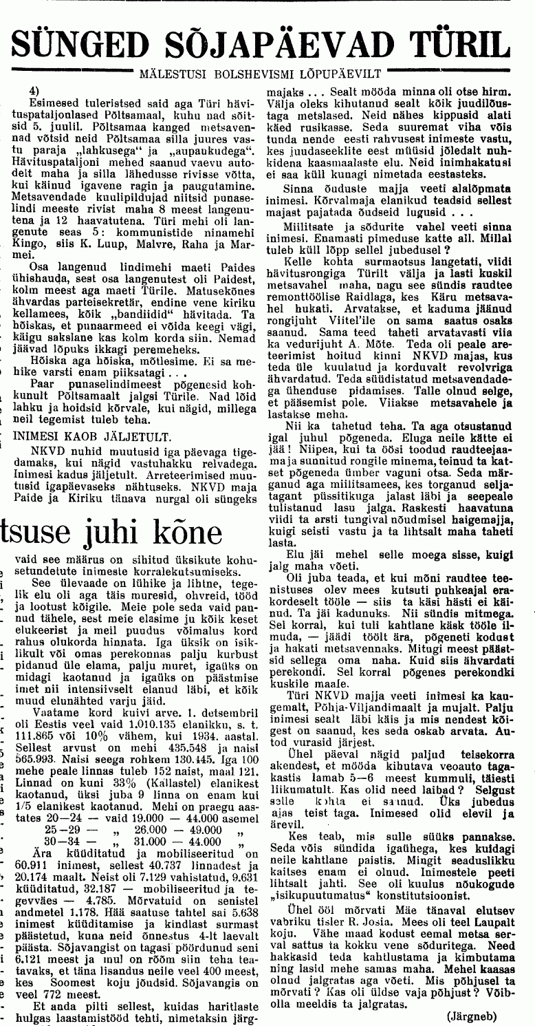Natuke skänne "Järva Teatajast" september-oktoober 1941