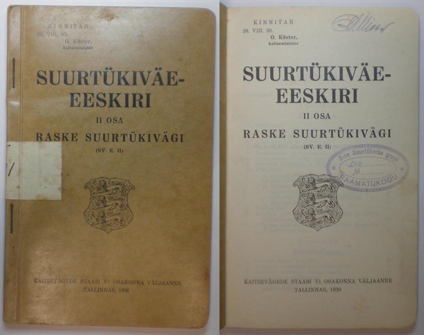 Laske-eeskiri ja suurtükiväe-eeskiri müüdud.