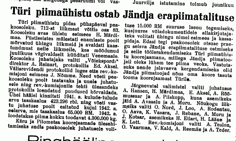"/.../kondenspiimatehase ehitus algas 1935. aasta 1. oktoobril/.../ Tööd olevat lõpetatud 1936. aasta 1. juuliks.