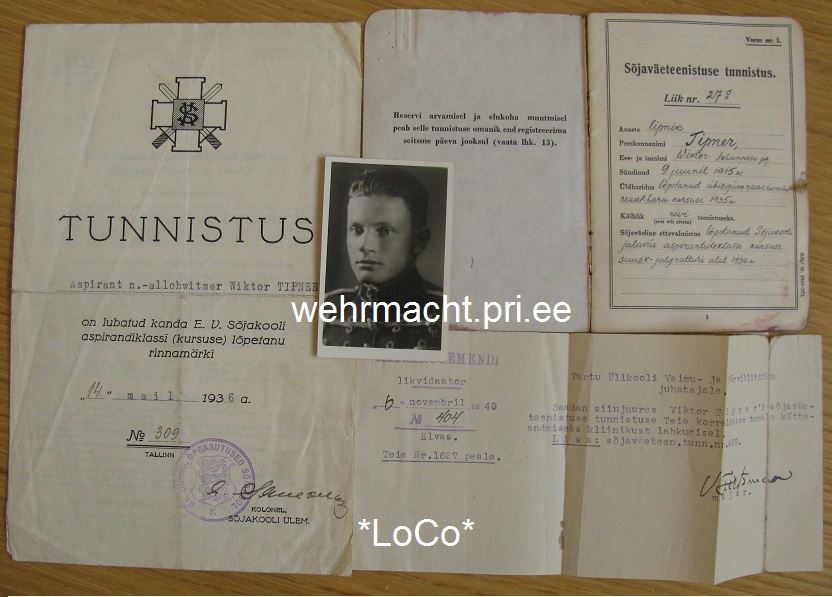 Väga heas säilivuses VR I/3 Veel ühe reservlipniku Sõjakooli aspirandiklassi lõpetanu rinnamärgi tunnistus, KV tunnistus, Ratsarügemendi likvideerija poolt saadetud kiri ja peotäis fotosid. Ühel pildil on ka üks tulevane tuntud sõjamees, kes samuti lõpetas Tondi sõjakooli aspirantide kursuse suuskur-jalgratturi erialal.