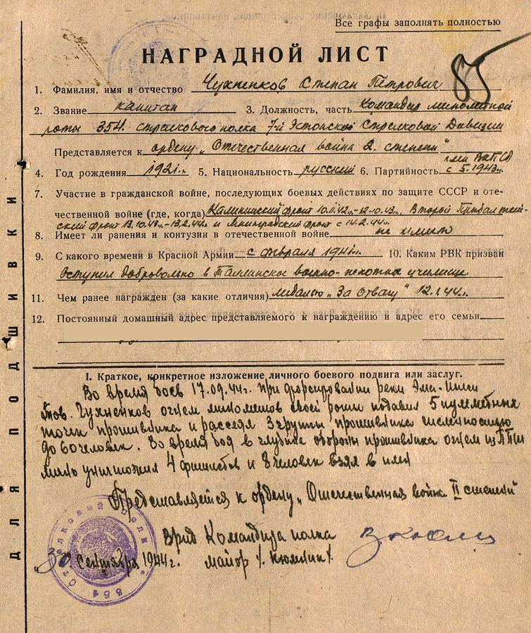 Muide huvitav on see, et kapten Tsuhnenkov’i Isamaasõja II klassi ordeni nr. on 126214 ja leheküljel nr. 8 oleval kapten Kihno Isamaasõja II klassi ordeni nr. on 126232.