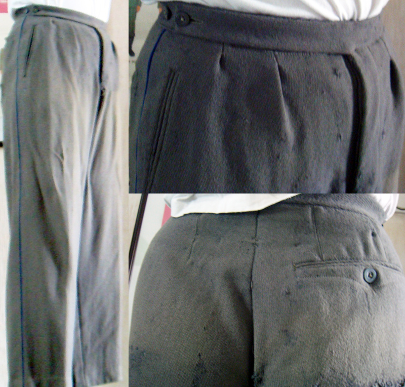 Võrdlus ida-saksa õhuväe rõivaga. Tundmatute pükste kangas jämedama koega ja kant tunduvalt tumedam.