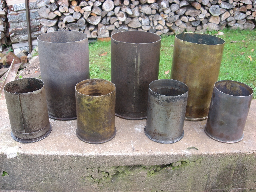 Teisel pildil siis endal olemasolevad 170mm ja 12,2cm saksa "keeratud" hülsid. Internetis ka 15,2cm trofee sakasa keeratuid hülsse olemas. Niimodi keeratud peaks olema need mida oliver silmas pidas? Üleskutse: Kui kellegil pakkuda "keeratuid" 105mm ja 155mm KORRALIKKE hülsse, palun andke teada. Tõesti pole kohand.