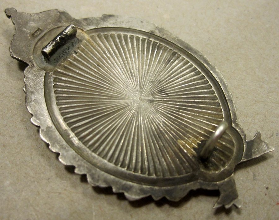 The Prussian Observers Badge, like the Pilot's Badge, the Observer's Badge was not strictly an achievement award. Observers training was longer and more rigorous than pilot training, so the Observer's Badge carried a status somewhat akin to an achievement award. It features an enameled Prussian "signal flag" in the center, surrounded by a red border, and fixed to abackground piece with a "starburst" design with a spray of laurels and oakleaves. The Prussian crown surmounts the design. German aviation obervers were almost always officers while during the early war years, pilot were frequently enlisted personnnel and ordered where to go and how to fly by the officer.