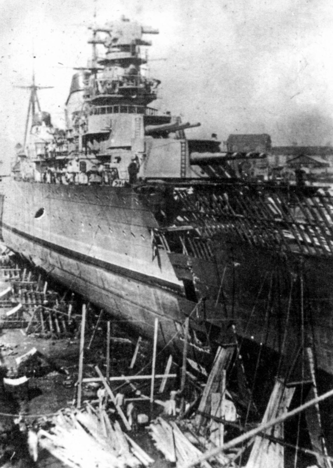 Kahel alumisel pildil on ristleja "Maksim Gorki" pärast miinile sattumist.
