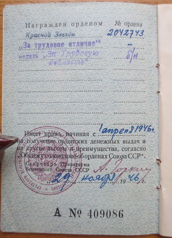 Punatähe orden ja Lahinguteenete medal on saadud ilmselt laevastikus väljateenitud aastate eest.