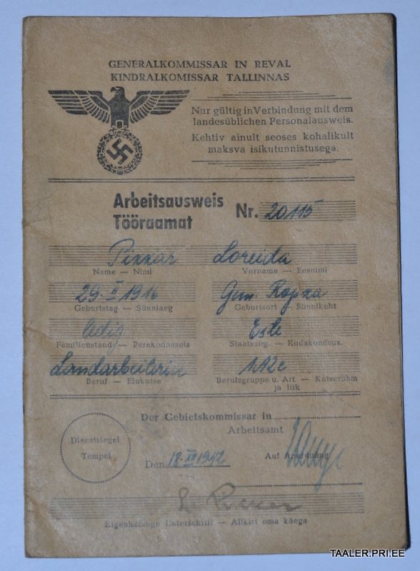Tööraamat ja tühi EW aegne paber kokku 25eur+post