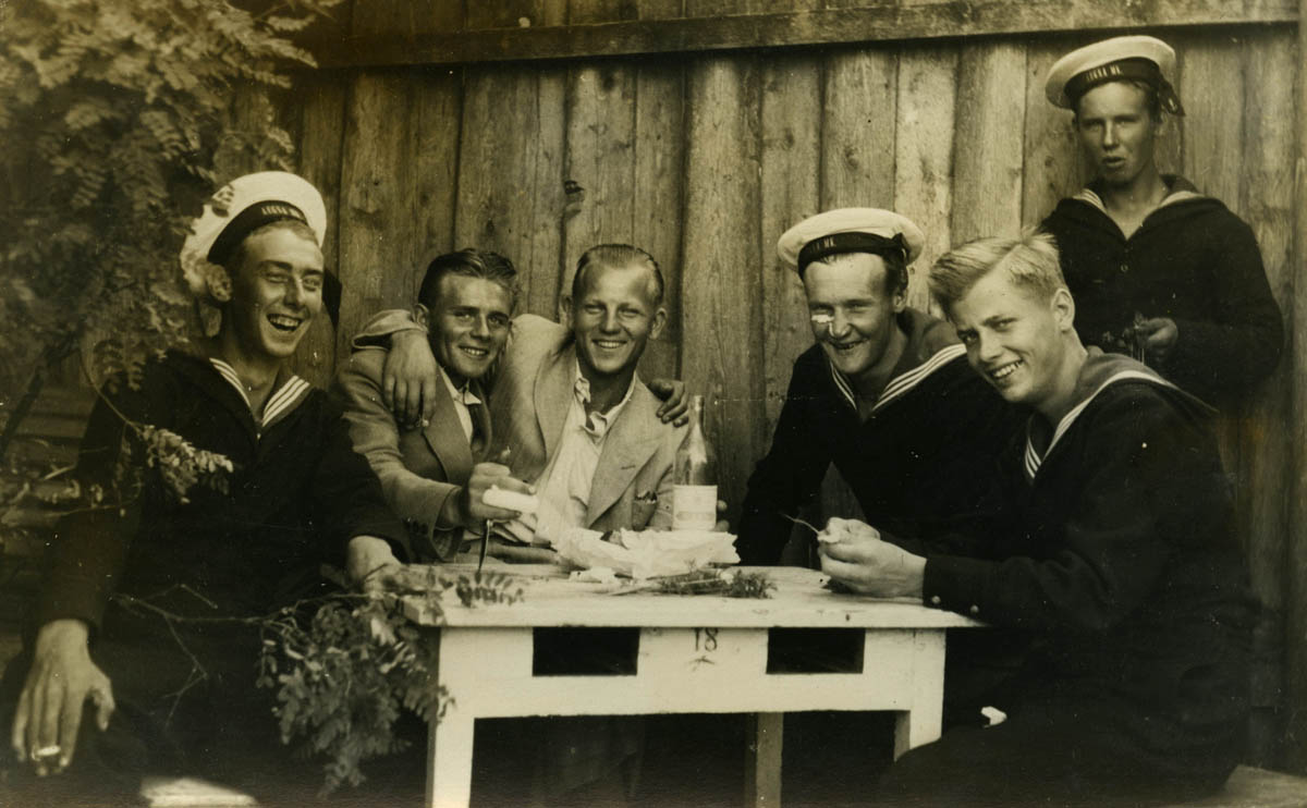 Fotol on Aegna Merekindluse sõdurid 1939/40 aasta paiku ja tundub, et laud on markeeritud suure Arsenali vibuga.