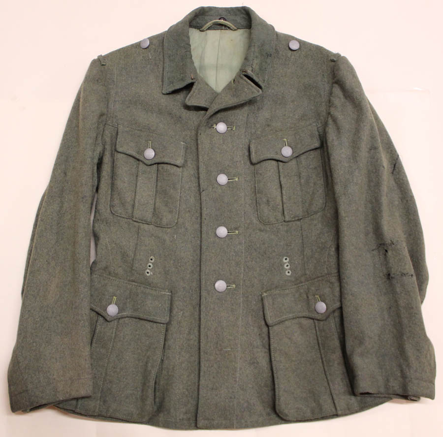 Originaalis on peal olnud Wehrmacht'i embleemid, mis on hiljem asendatud SS embleemidega (niidid osaliselt siiani sees ja vaja välja harutada). Vasakul varrukal kaks väikest auku, kui see defekt välja arvata siis tegu peaaegu, et kandmata kuuega.