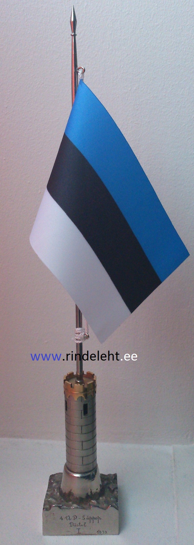 Kuna lipuvarras oli liputa, siis tänase päeva puhul sai uus lipp külge pandud. Kiri alusel. Pitsil kiri: "21.05.39. 4. üks. jal. pat. tagav. ohv, sektsioonilt"