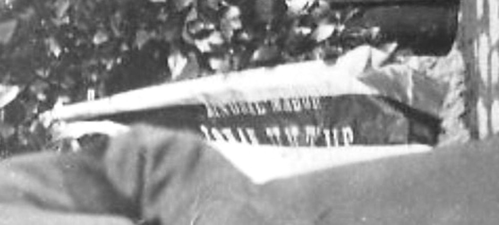 on kahe sõjaväelase vahel (vasakult kolmas lint, tagaplaanil). Foto taga oleks nagu