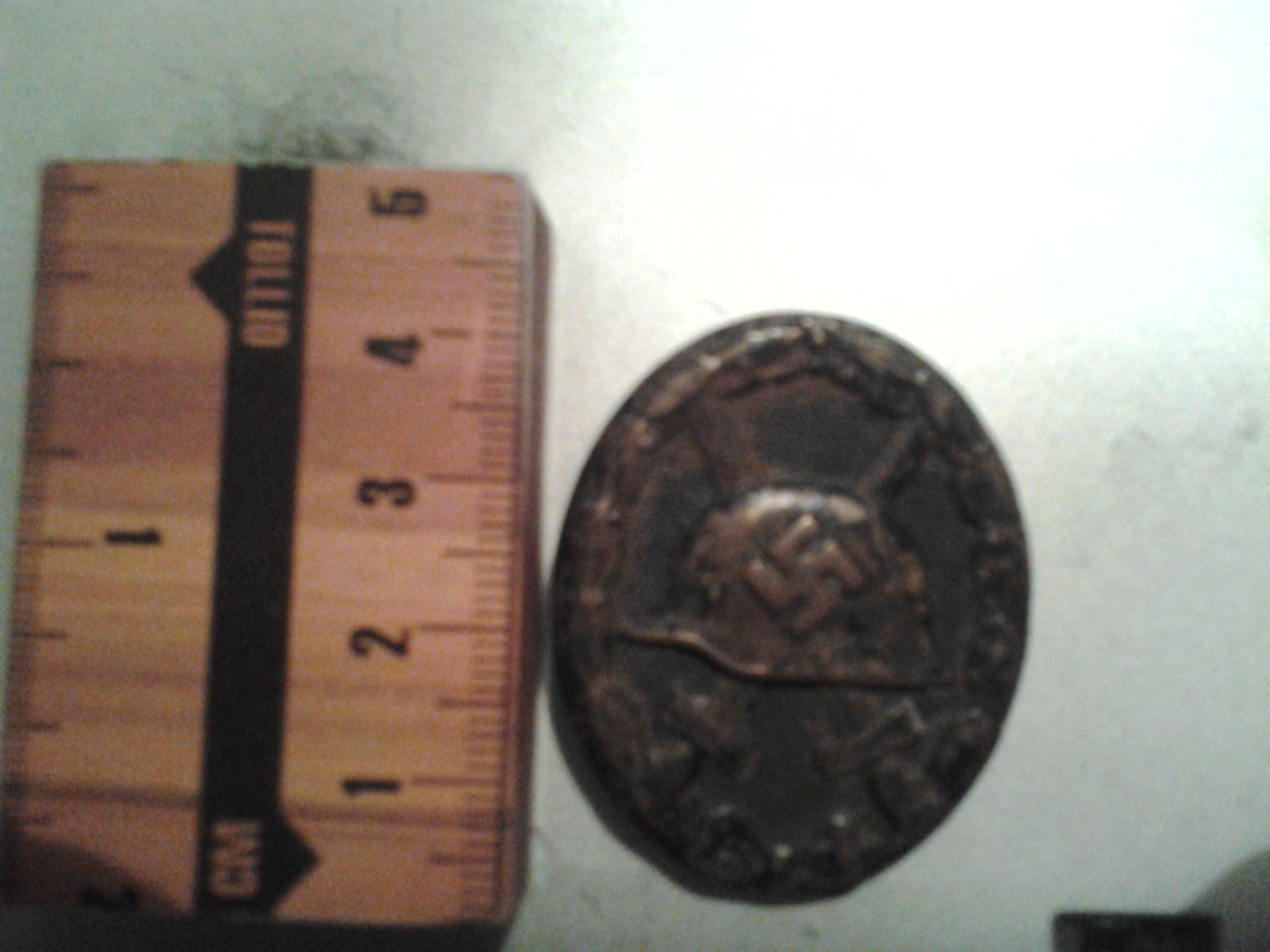 ) on kriipsud nende all mõlemal . haavatumärgil markeringuid taga pole ning kinnitus aas on murdunud ning murtud kohapeal on kergelt vaskne rooste närimisjälgi on märgil siin seal peal... Loodan et kirjeldus väga segane pole