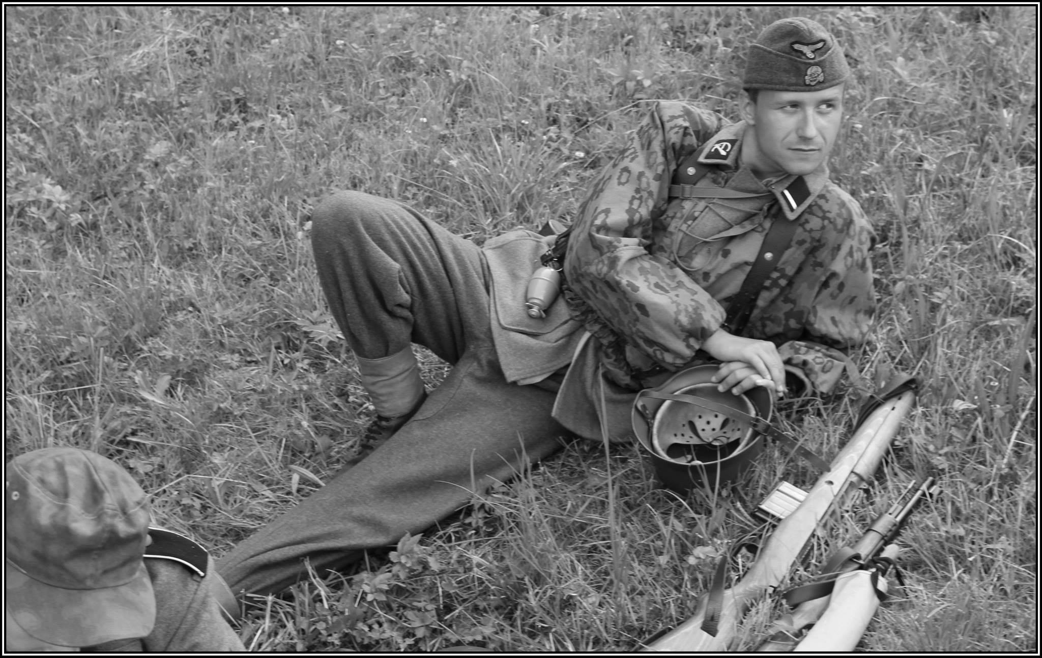 Yesterday was our last workout. Theme Estonia summer 1944. Camouflage uniforms and smocks are from 1944 Militaria and Panther store. Guns are originals only MG is Yugoslavia M53.